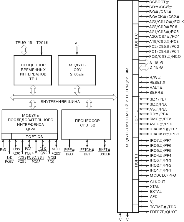 показана на рис. 3.25. В состав микроконтроллера входят процессор CPU32, ОЗУ емкостью 2 Кбайт, модули SIM,