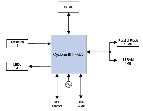 Внутренняя архитектура стартового набора Altera Cyclone III Starter Kit |