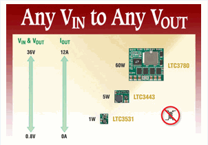 Компания Linear Technology выпускает широкий ассортимент высокопроизводительных импульсных преобразователей напряжения, как с синхронными так и c несинхронными внутренними силовыми ключами. Импульсные преобразователи Linear Technology поддерживают типовое входное напряжение от менее 2 Вольт до более 100 Вольт, частоту переключения до 4 МГц и обеспечивают КПД вплоть до 96%. Помимо этого, возможность работы в пакетном режиме (Burst Mode) позволяет снизить ток покоя преобразователя до нескольких десятых микроампера. Такая комбинация технических характеристик позволяет разработчикам создавать чрезвычайно компактные, низкопрофильные схемы питания с минимальным числом внешних компонентов. Linear Technology предлагает обширную линейку устройств различных топологий - повышающие (Boost), понижающие (Buck), понижающе-повышающие (Buck-Boost) импульсные преобразователи, инвертирующие, обратноходовые (flyback) и изолированные импульсные преобразователи. К дополнительным особенностям устройств можно отнести регулируемую или внешне синхронизируемую частоту переклюючения, миниатюрные размеры корпуса, минимальное число внешних компонентов.