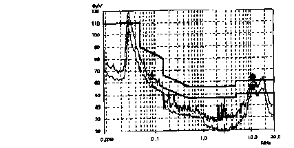 Рис. 18. Типичный уровень помех для нуля относительно нуля(верхний график: квазипик, нижний график: среднее значение).Также показано предельное значение для EN55015.Перечень элементов балласта