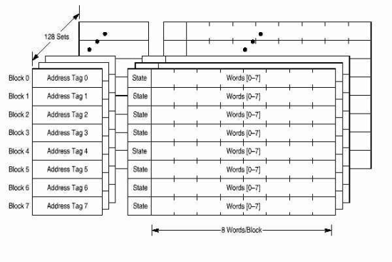 В течение такта кэш данных предоставляет для считывания в LSU двойное слово. Как и кэш команд, кэш данных может быть сделан недействительным (invalidated) весь или поблочно. Данные кэша делаются недоступными и недействительными сбросом HID0[DCE] и установкой HID0[DCFI], кэш данных может быть заблокирован установкой HID0[DLOCK]. Тэги кэша имеют один порт, поэтому одновременная загрузка/сохранение и обращения для когерентности кэша вызывают конфликт, при этом LSU внутренне блокируется на один такт для записи блока данных в 8 слов в буфер обратной записи. Кэш команд также состоит из 128 банков по 8 блоков. Каждый блок состоит из 32 байтов, 1 бита состояния и адресного тэга. За один цикл кэш команд предоставляет до 4 команд в очередь команд. В кэше команд поддерживаются только состояния верно/неверно (valid/invalid) для данных. Кэш команд не отслеживается, поэтому если изменяется память, данные которой содержатся в кэше, программа должна сообщать об этом устройству выборки команд. Кэш команд может быть сделан недействительным весь или поблочно. Доступ к кэшу запрещается и кэш делается недействительным сбросом HID0[ICE] и установкой HID0[ICFI], кэш блокируется установкой HID0[ILOCK]. В 750 реализован также кэш команд переходов (branch target instruction cache, BTIC). В BTIC хранятся встретившиеся в программе команды переходов/циклов. Если команда находится в BTIC она поступает в очередь команд на такт быстрее, чем из кэша команд. Системный интерфейс. Схема выводов процессора