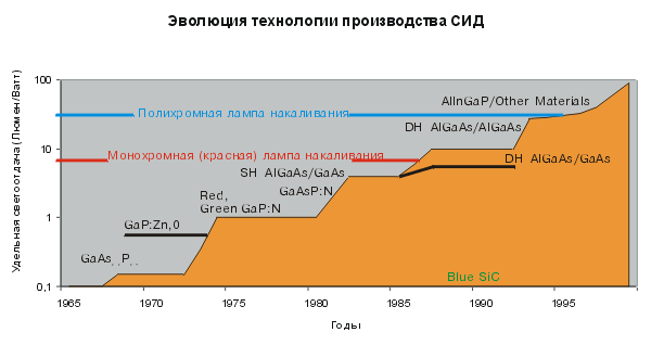 Рис. 1. Эволюция технологии производства СИД